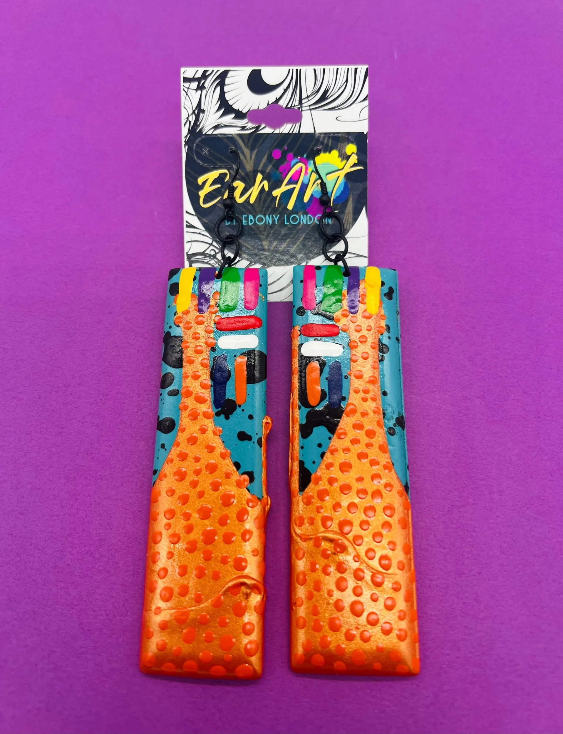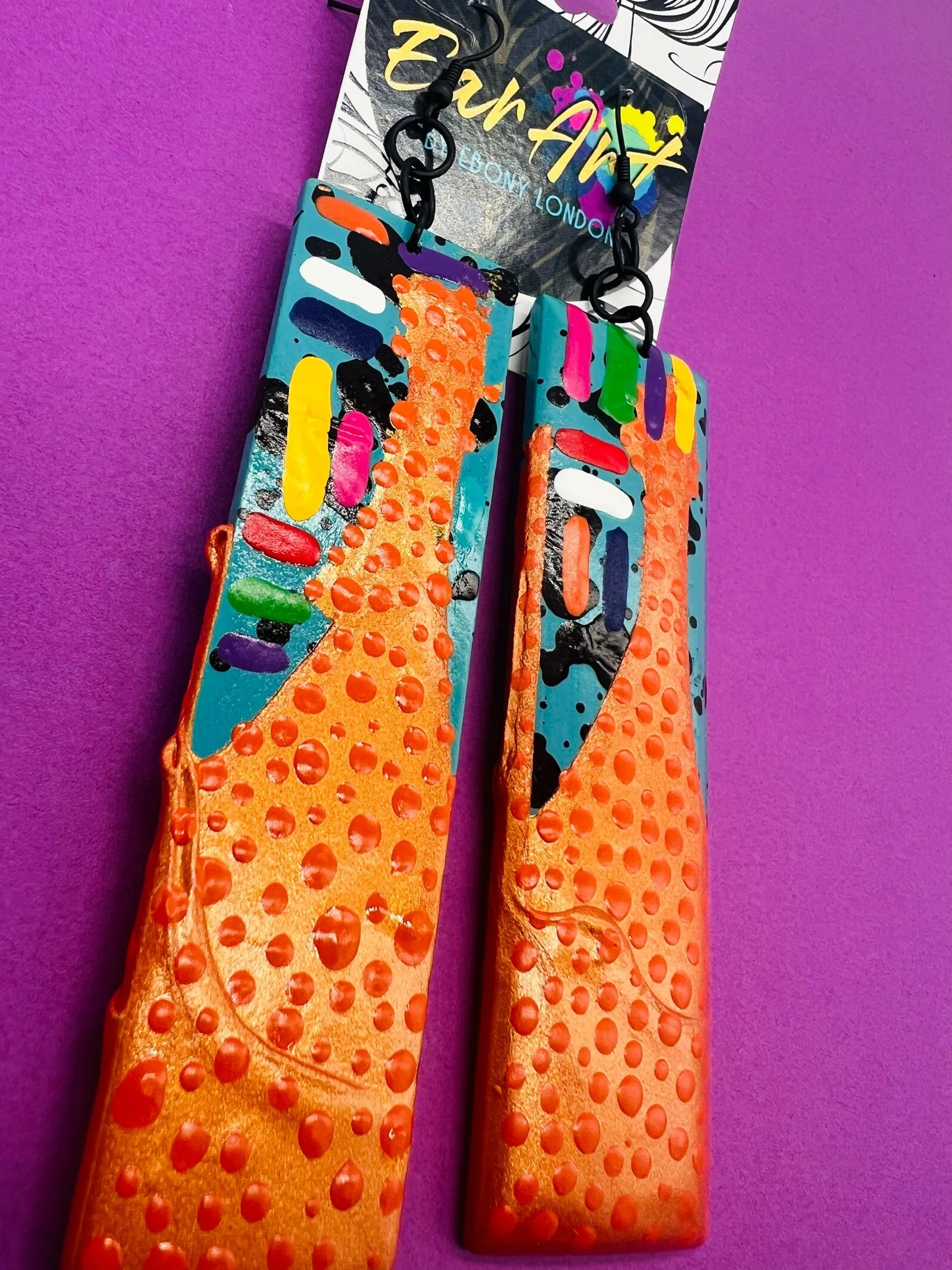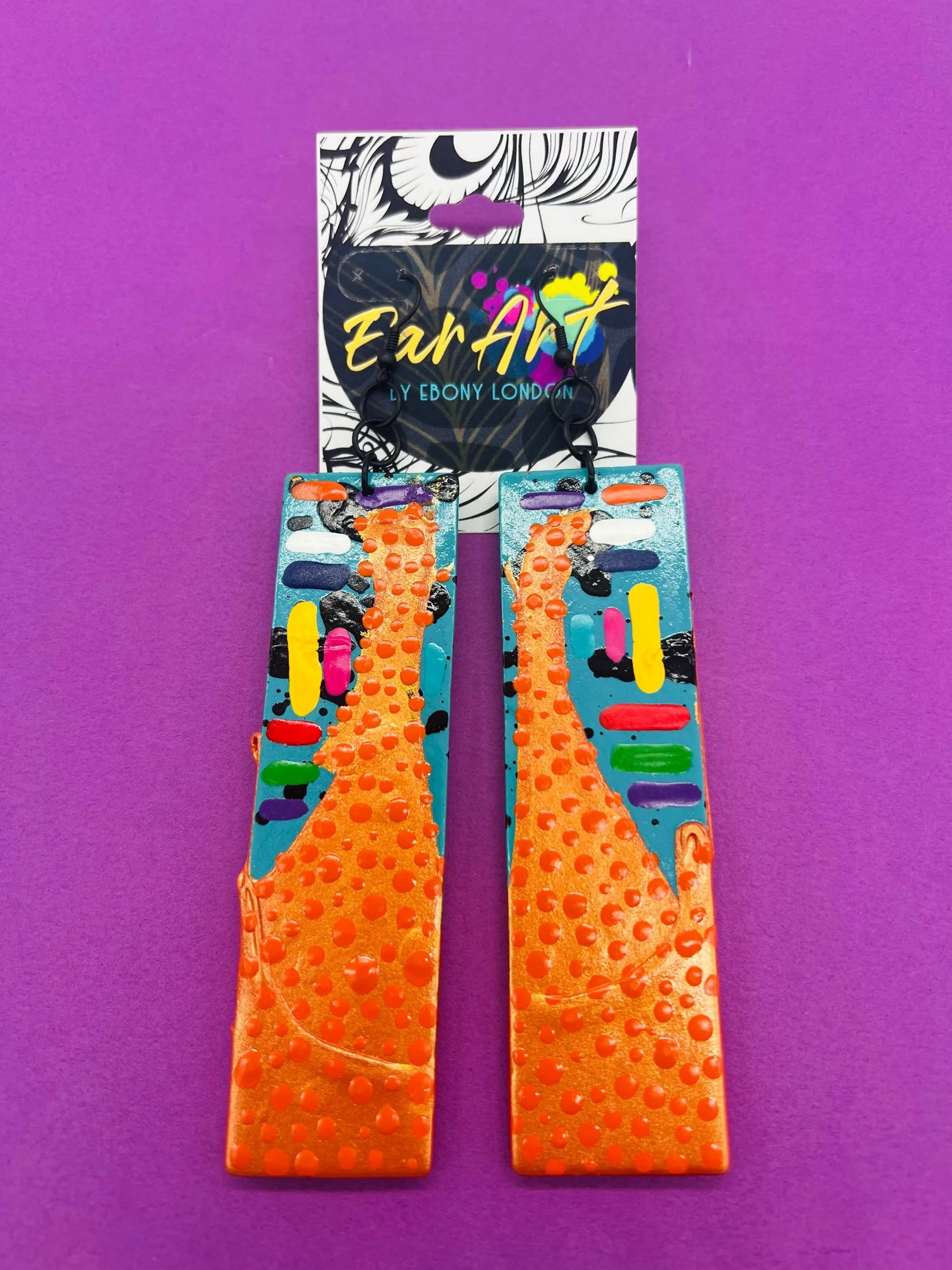 The Let It Do What It Do Collection is a finite design series rooted in trust — trust in the process, the material, and the outcome. Each pair features elongated, lightweight wooden earrings, hand-painted, dipped, and/or splattered, measuring up to 10 inches in length and 1.5 inches in width.