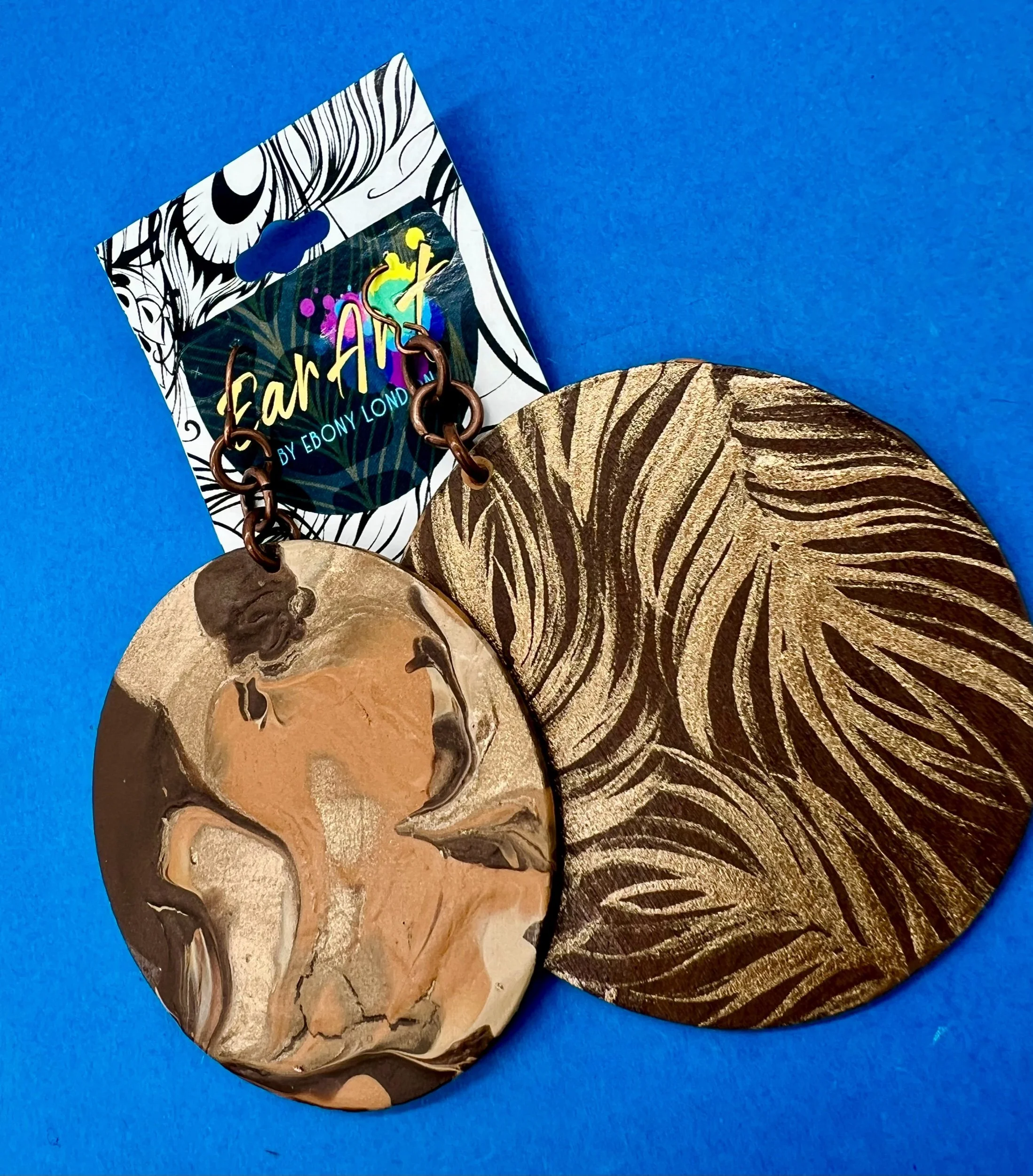 Shop Ear Art › Brown Sugar Image 1 of 5 Image 2 of 5 Image 3 of 5 Image 4 of 5 Image 5 of 5 Brown Sugar Sale Price: $25.00 Original Price: $85.00 Pair of earrings3.75 in l x 2.75 in w Purchase Added! Pair of earrings3.75 in l x 2.75 in w